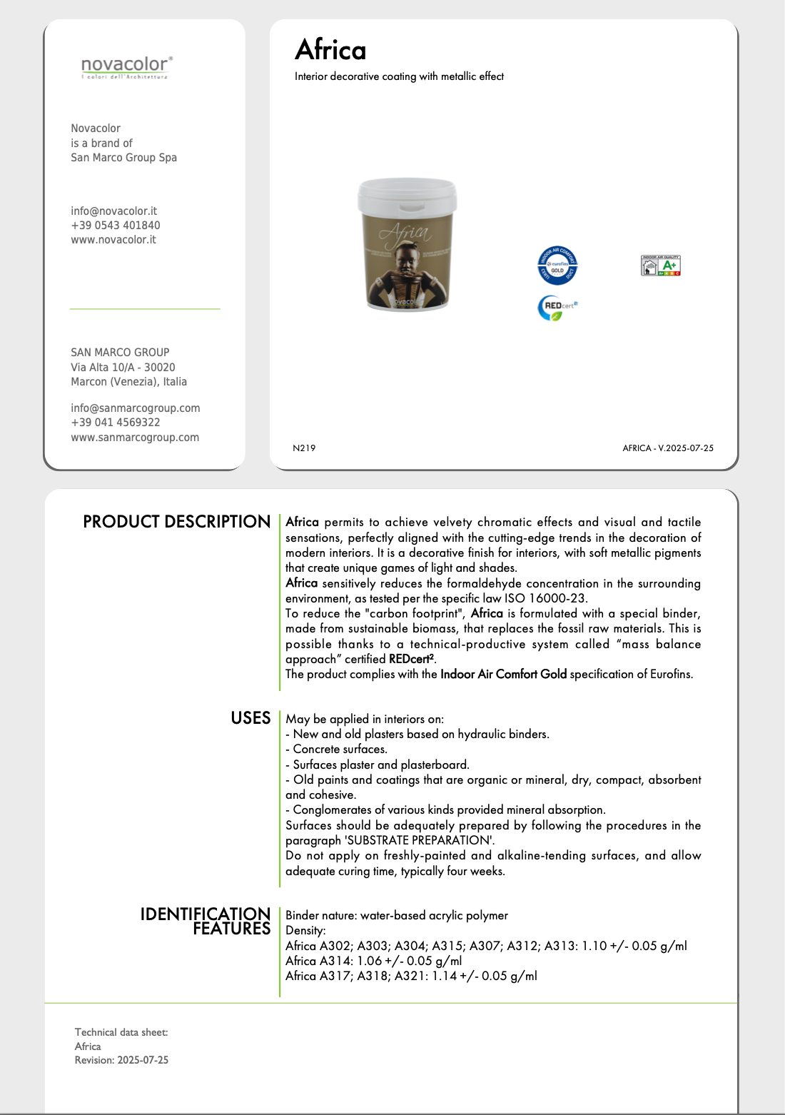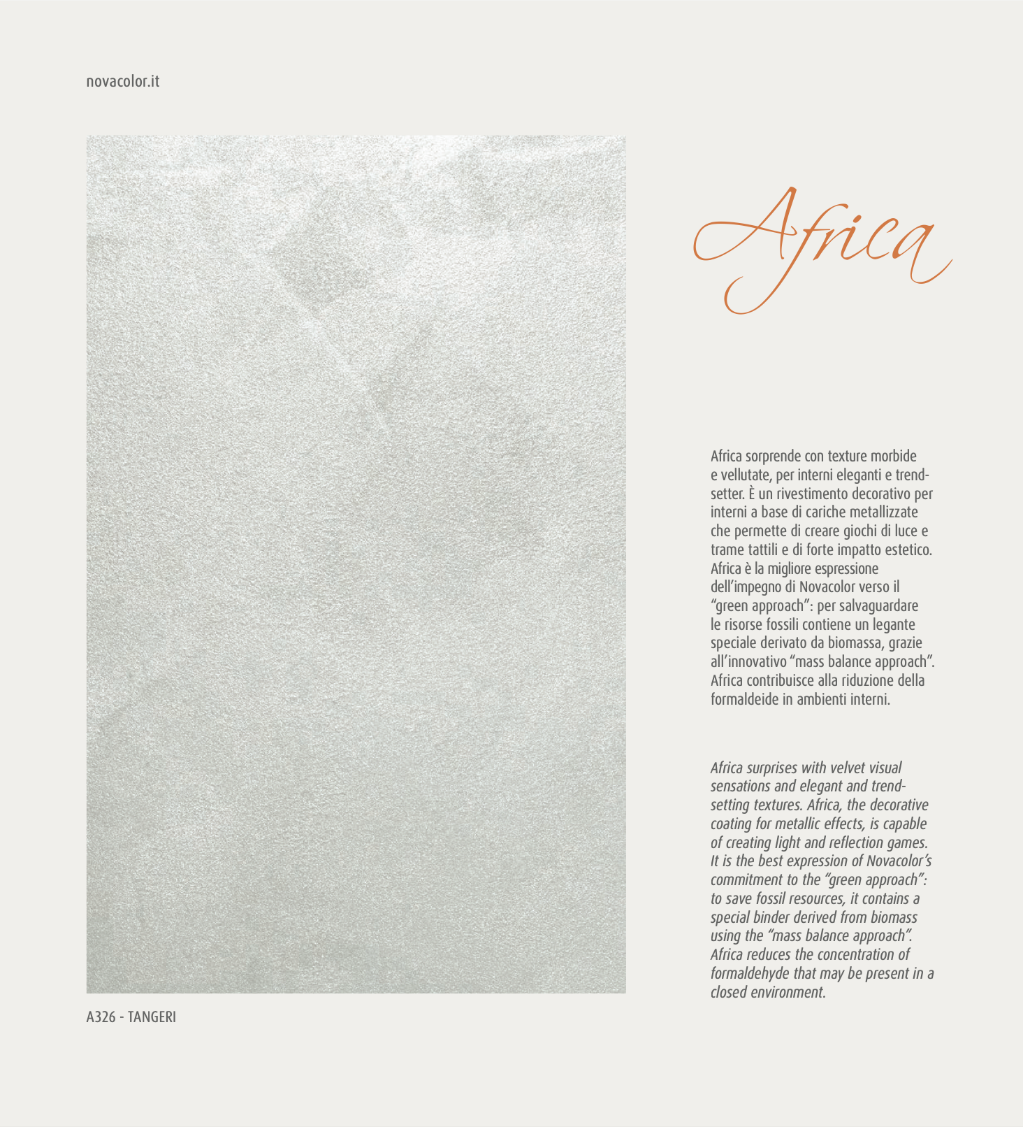 Sustainability is thoughtfully integrated into its formulation. Africa is produced using a biomass-based binder that partially replaces fossil-derived raw materials, helping reduce its carbon footprint. This responsible sourcing is verified through the REDcert²-certified mass balance approach. It ensures environmental integrity without compromising performance or craftsmanship.