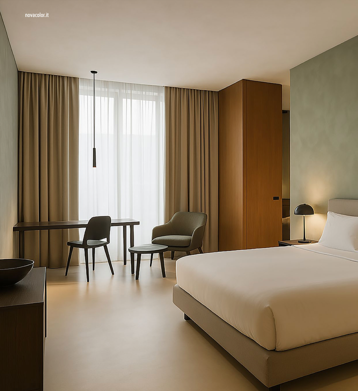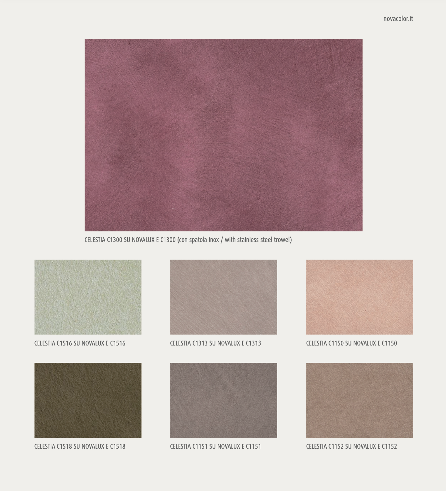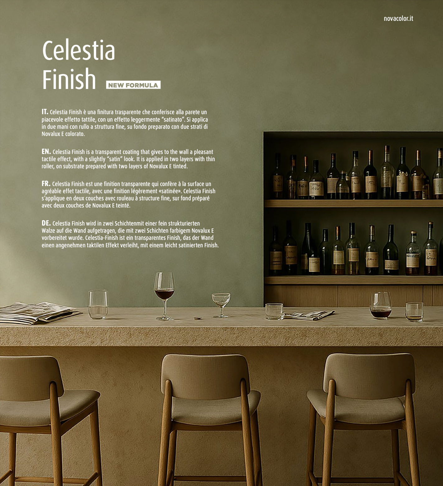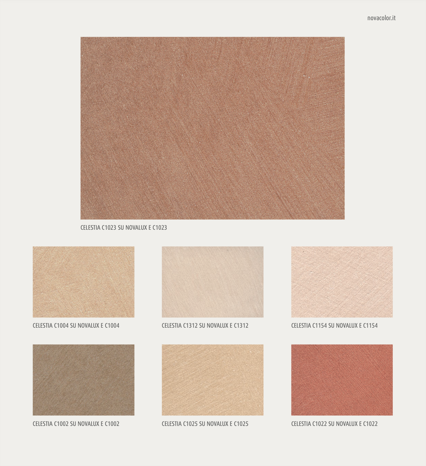 Celestia wall is an interior decorative wall finish that captures the refined character and tactile elegance of natural leather. Formulated with advanced elastic compounds and specialized resins, it creates rich visual depth and a soft, expressive surface that invites both sight and touch. Its nuanced shades and layered tonal variations shift gently with light, bringing warmth, sophistication, and emotional resonance to contemporary interiors.