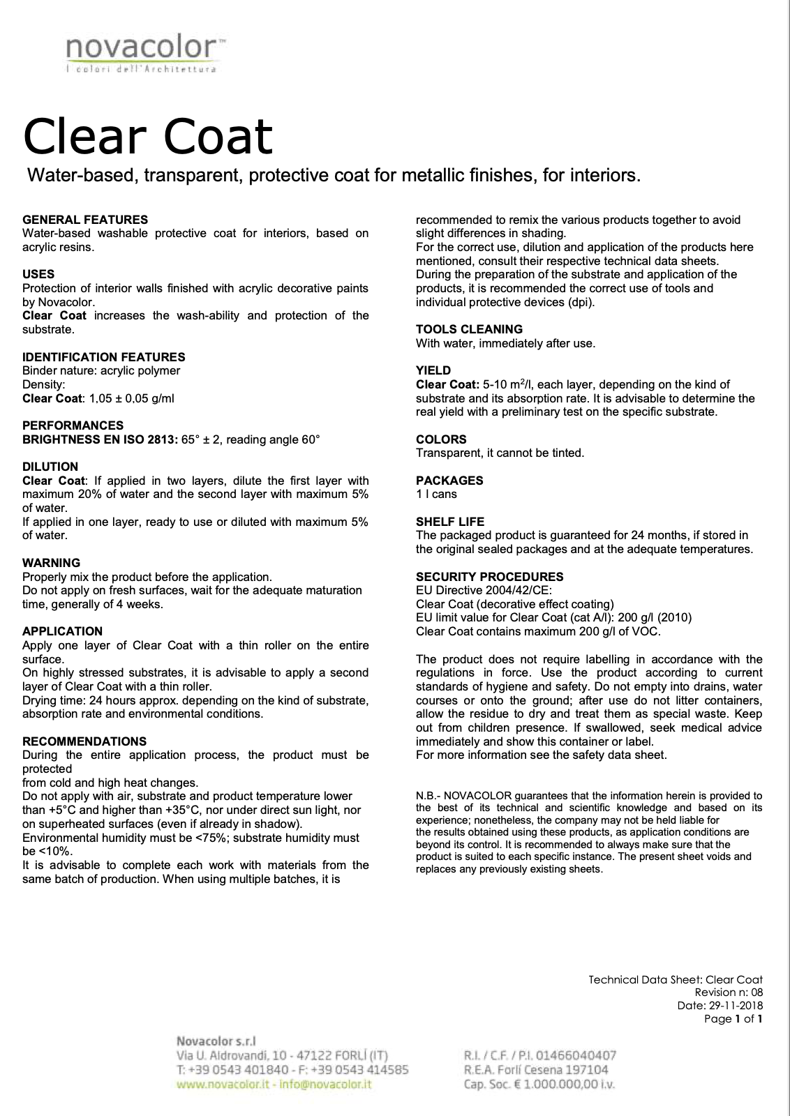 Clear Coat is a water-based protective finish designed to preserve the beauty and longevity of decorative interior surfaces. Formulated with advanced acrylic resins, it creates a transparent, breathable layer that enhances durability while maintaining the original appearance and character of the finish beneath.