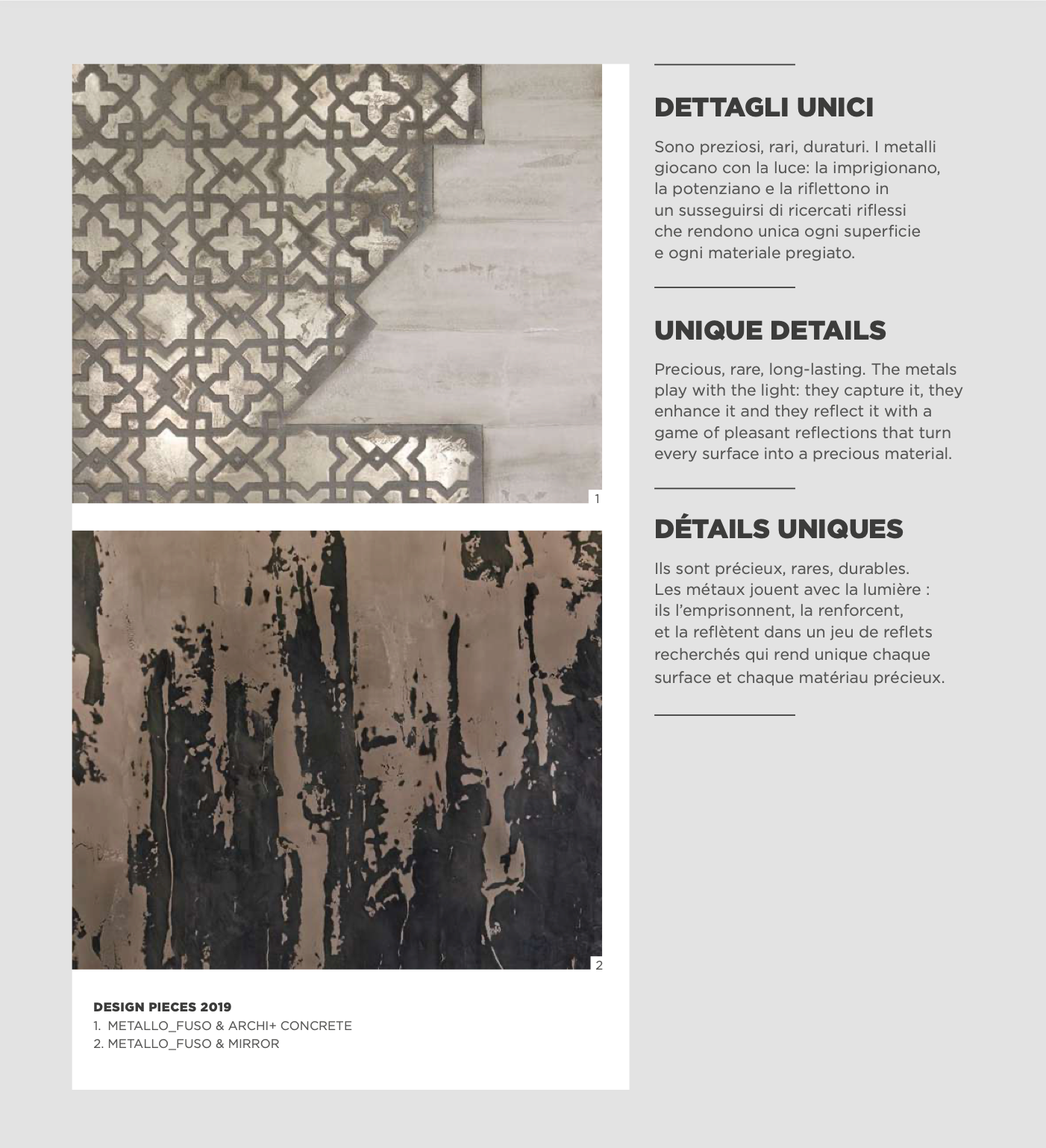 Metallo Fuso is where material authenticity, texture, and design converge to create surfaces of lasting impact.
