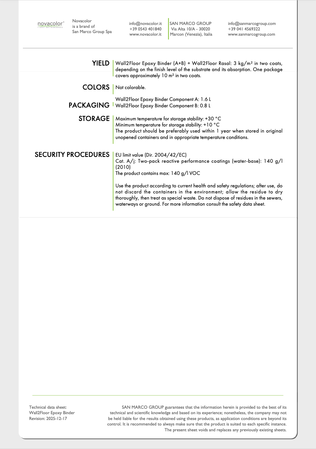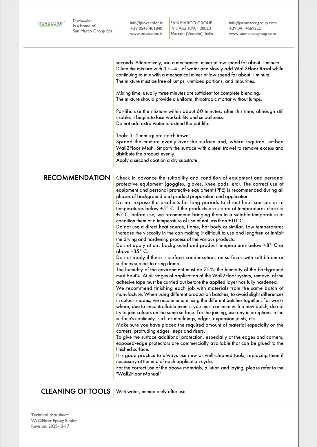 When combined with Wall2Floor Rasal, it forms a high performance epoxy cement compound, creating a three component leveling solution designed to deliver a stable, uniform, and resilient substrate. This synergy ensures optimal adhesion and mechanical resistance, preparing surfaces to receive subsequent decorative finishes with confidence and consistency.