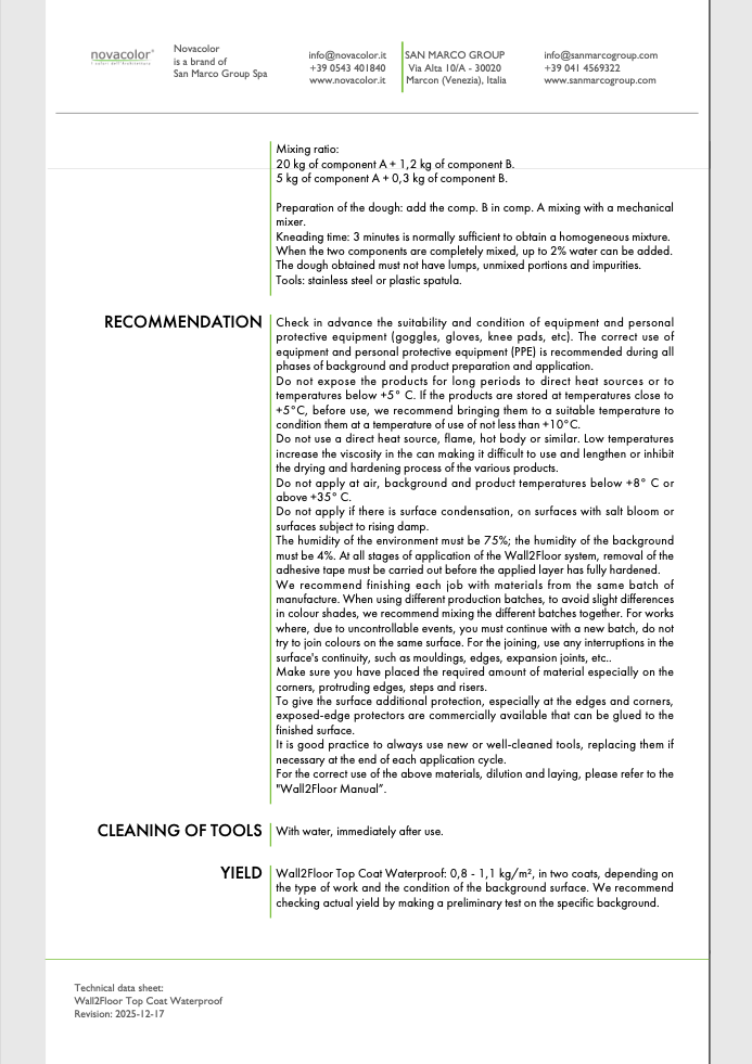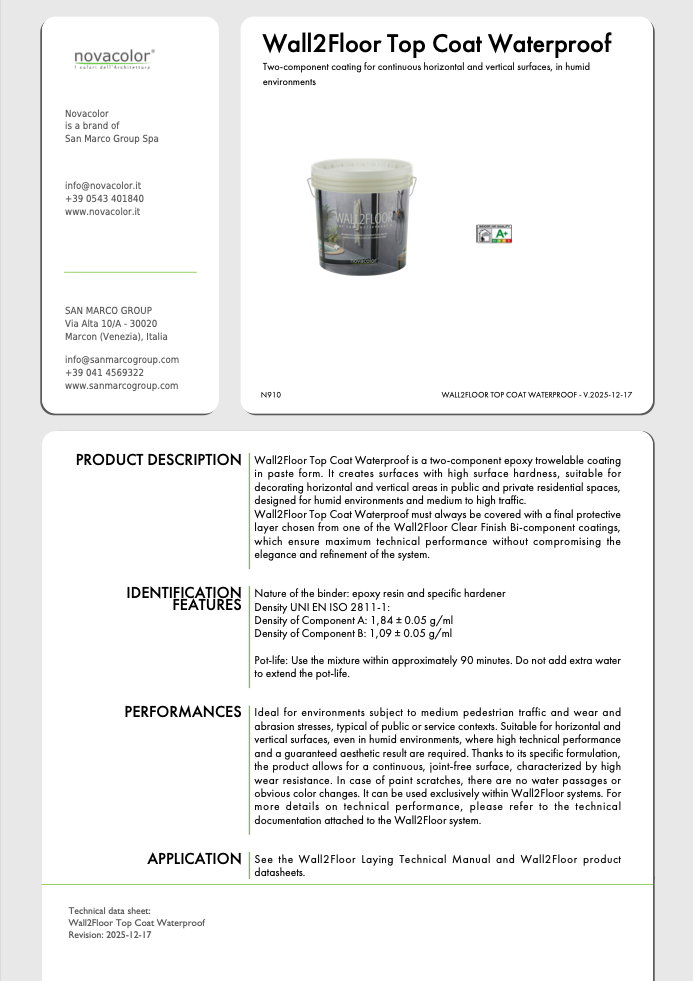 Wall2Floor Top Coat Waterproof represents the perfect balance between technical excellence and refined design, offering surfaces that are both resilient and visually uncompromising.